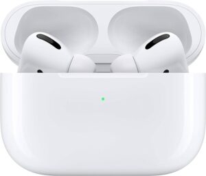 The Apple AirPods Pro offers an unparalleled wireless audio experience, featuring Active Noise Cancellation that allows you to immerse yourself in your music or podcasts. Designed with a customizable fit, they include three sizes of soft silicone tips, ensuring a comfortable and secure fit for all-day wear. The Transparency Mode allows you to hear and interact with your surroundings while still enjoying your audio. These earbuds are sweat and water-resistant, making them perfect for workouts. The AirPods Pro also features spatial audio with dynamic head tracking for a theater-like sound experience. With the included wireless charging case, you get more than 24 hours of listening time.