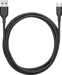 Best Buy essentials™ – 6′ USB-C to USB Braided Charge-and-Sync Cable – Black